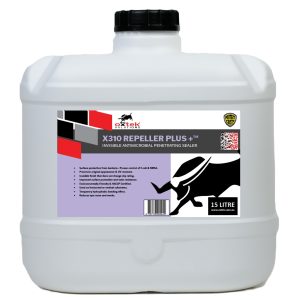 X310 Repeller Plus + ™ is an invisible antimicrobial, surface protection treatment for concrete, masonry, and some natural stone substrates. With PROVEN TESTED safe silver ion antimicrobial additive, X310 Repeller Plus + ™ will protect the substrate from E coli & MRSA. A water-based formulation spray applied to new and existing substrates providing stain resistance from oils and other contaminants, compatible with line marking paints.